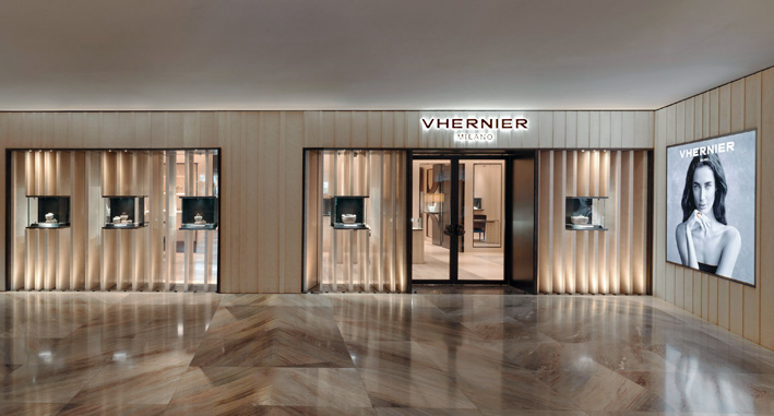 Die neuen Boutiquen befinden sich in Peking und Shanghai, jeweils in den Peninsula Hotels. Beide bieten eine Auswahl an Vhernier-Schmuck, darunter die Kollektionen Abbraccio und Calla – die bekanntesten Linien des Hauses – sowie Freccia und Palloncino. Der Schmuck der Mailänder Marke zeichnet sich durch ein modernes und minimalistisches Design aus und wird mit unverwechselbaren Goldschmiedetechniken gefertigt, wie beispielsweise Trasparenze. Dieser Begriff bezeichnet die Verwendung verschiedener Materialien wie Edelsteine oder Perlmutt, die übereinander geschichtet werden, um einzigartige Nuancen zu erzeugen. Neben klassischem Gold und Diamanten werden die Schmuckstücke auch aus weniger konventionellen Materialien wie Titan, Aluminium, Bronze und Ebenholz hergestellt.