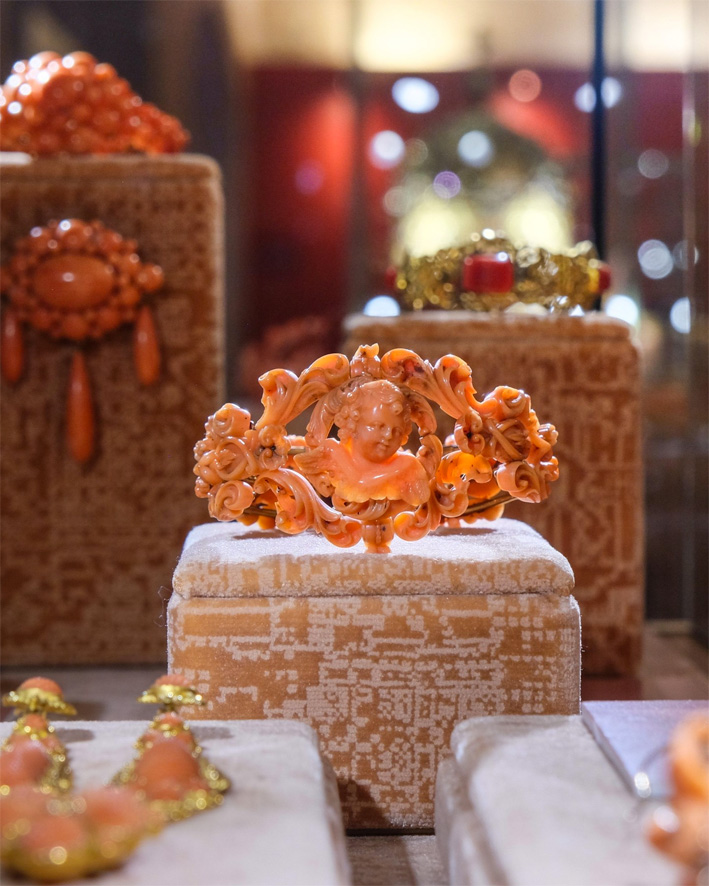 The exhibition highlights the exceptional nature of Italian jewelry in a continuous narrative unfolding across the Museum’s six rooms in 11 stages. A journey through 2,000 years of history, from the 5th century B.C. The collection spans over 150 works, including individual jewels and sets, as well as everyday objects such as handbags, cosmetic bags, precious containers, three paintings, and two Apulian ceramics from 330-310 BC. The jewelry is crafted from gold, coral, semiprecious stones, glass, micromosaic, gems, and even unconventional materials, such as the extremely difficult Etruscan granulation used in a late 20th-century set. The Palladian Basilica, which houses the museum in Vicenza