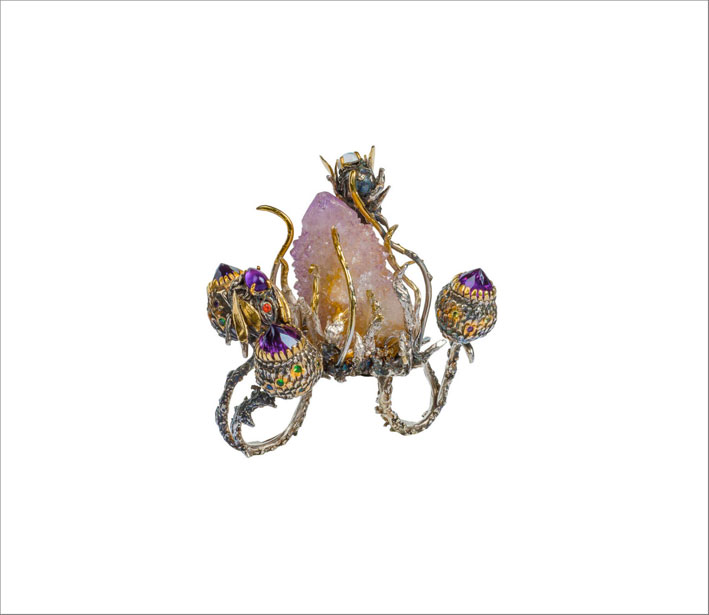 Escultora, artista, creadora: defínelo como quieras, pero Iwona Tamborska, de Polonia, ciertamente no es una de las muchas diseñadoras de joyas. Aunque ella crea joyas. Son, sin embargo, objetos diferentes, más como esculturas. Ella quiere subrayar este aspecto: su marca se llama Rękami Stworzone, palabras que en polaco significan Creado a mano. Más precisamente, agrega en su biografía sobre ella que no se considera una joyera, sino más bien una narradora, con la diferencia de que estos cuentos se traducen en plata y piedras preciosas.