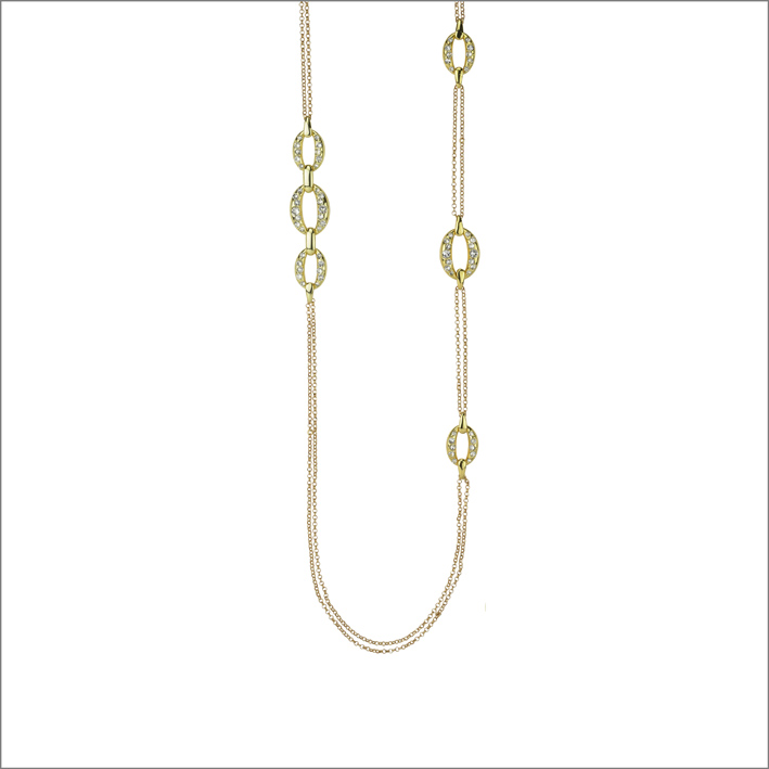 Los matices de los puntos de luz, desde el azul denim hasta el amatista claro, iluminan las joyas en versión doblemente rodiada y bañada en oro amarillo, dando vida a joyas con una fuerte personalidad. Algunas piezas, como los colgantes, vienen en dos tamaños.